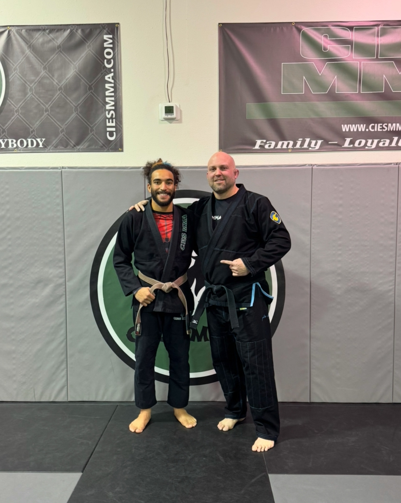 Darien was just 17 when he first stepped foot into Cies MMA, and he stuck with it ever since. Now he is a 5-3 professional fighter, competing on UFC Fight Pass regularly. He trusted Coach Mikes path for him and trained in the Gi despite the popular opinion that fighters do not need to. He is becoming more and more of a martial artist as the years go on in his journey. Darien can train with the best of the best or the newest member. We are proud of his accomplishments but more importantly we are proud of the man he has become. On February 19th 2025 he became that much closer to a black belt.