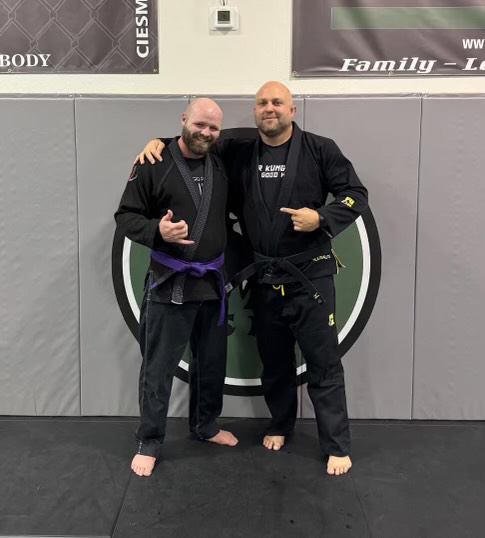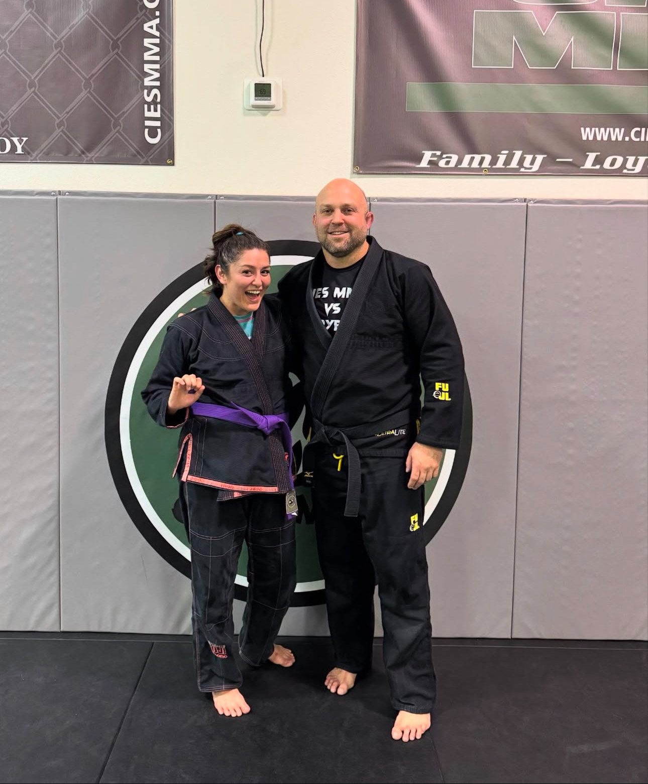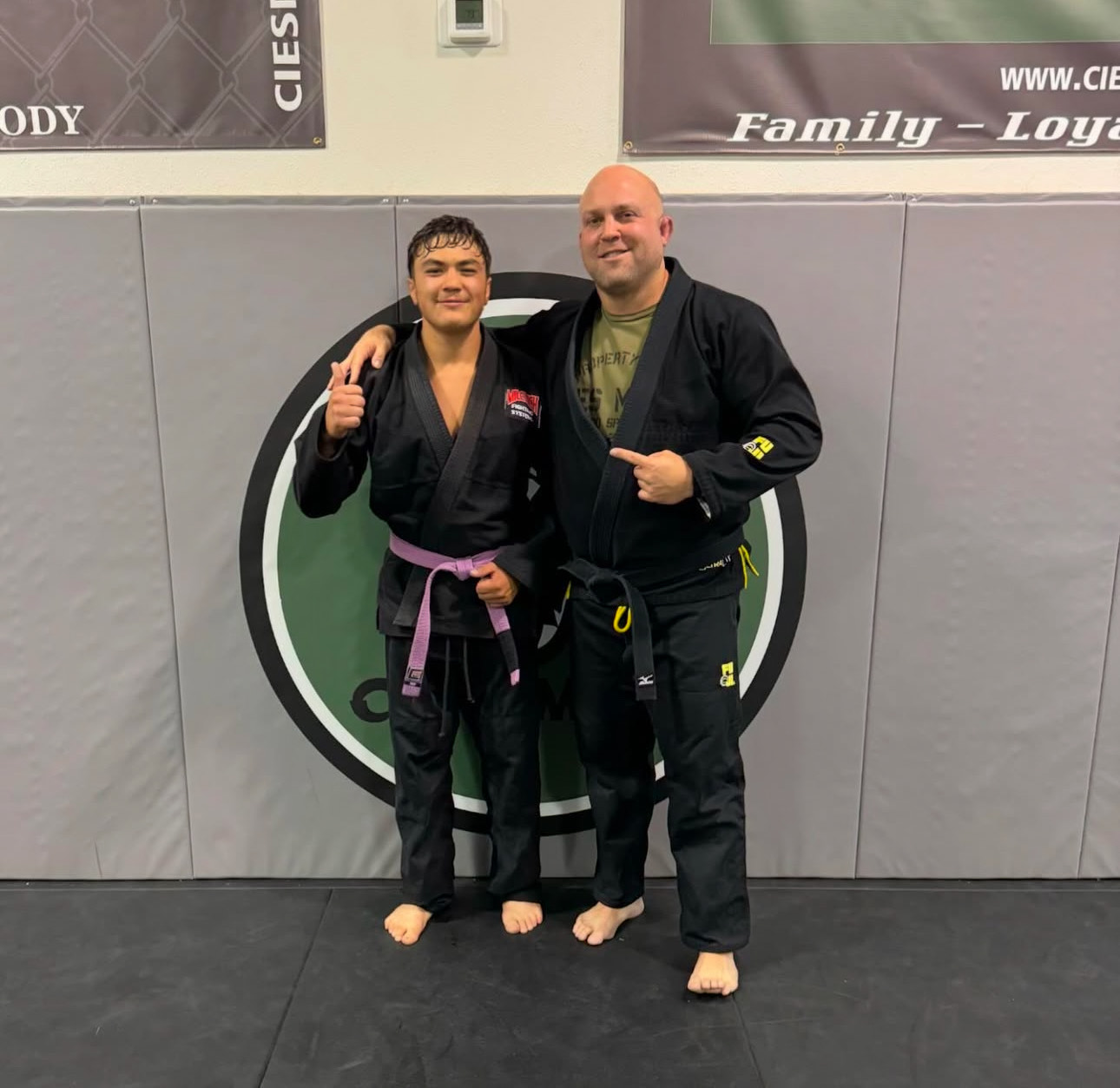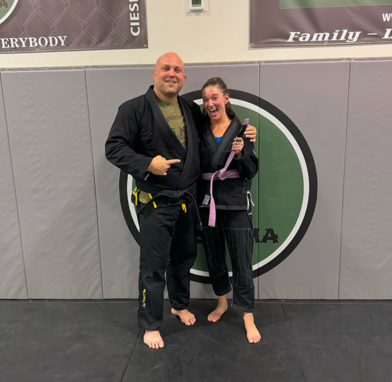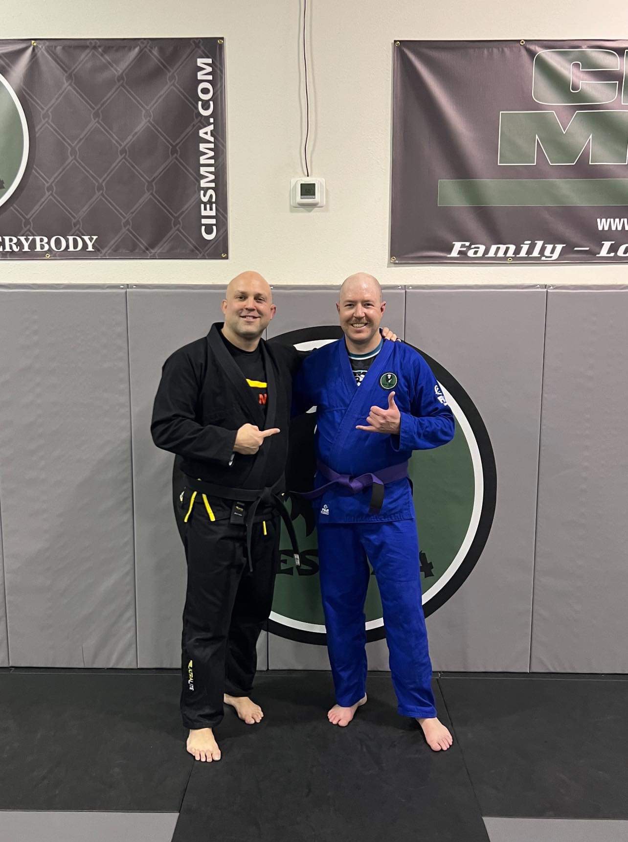 Steve has been a member of Cies MMA since March of 2017 and has always found a way into the gym no matter how busy his life gets. Steve commutes from around 1hr away just to train at our gym, and is a Lieutenant in the Monument Fire Department. An upstanding citizen and father, Steve exemplifies being a good person on and off the mats. It was professor Mike Ciesnolevicz's honor to promote Steve as his 8th ever purple belt on November 14th 2022.